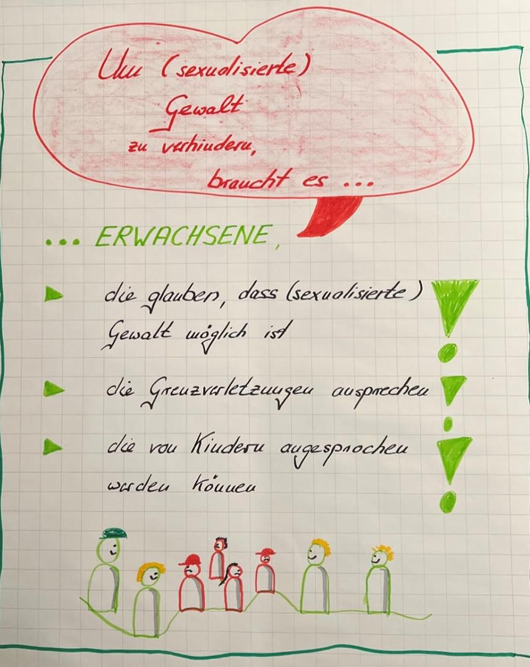 Die Teilnehmenden setzten sich intensiv mit verschiedenen Aspekten auseinander: Sie lernten typische Täterstrategien kennen, beschäftigten sich mit der Gefühlswelt von Betroffenen, analysierten mögliche Risikofaktoren im Verein und ordneten unterschiedliche Verhaltensweisen mithilfe der sogenannten Ampelmethode ein (Grün = unbedenklich, Gelb = kritisch, Rot = nicht akzeptabel).