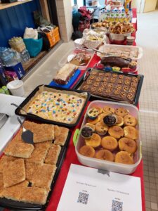 während des Wettkampfes und das Kuchenbuffet für die wartenden Eltern und hungrige Sportler war