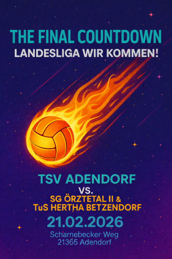 Am 21.02.2026 steht für den TSV Adendorf ein echtes Highlight an: Es ist das große Finale im Kampf um die Landesliga! Unter dem Motto „The Final Countdown“ wollen wir gemeinsam mit euch den nächsten Schritt gehen.