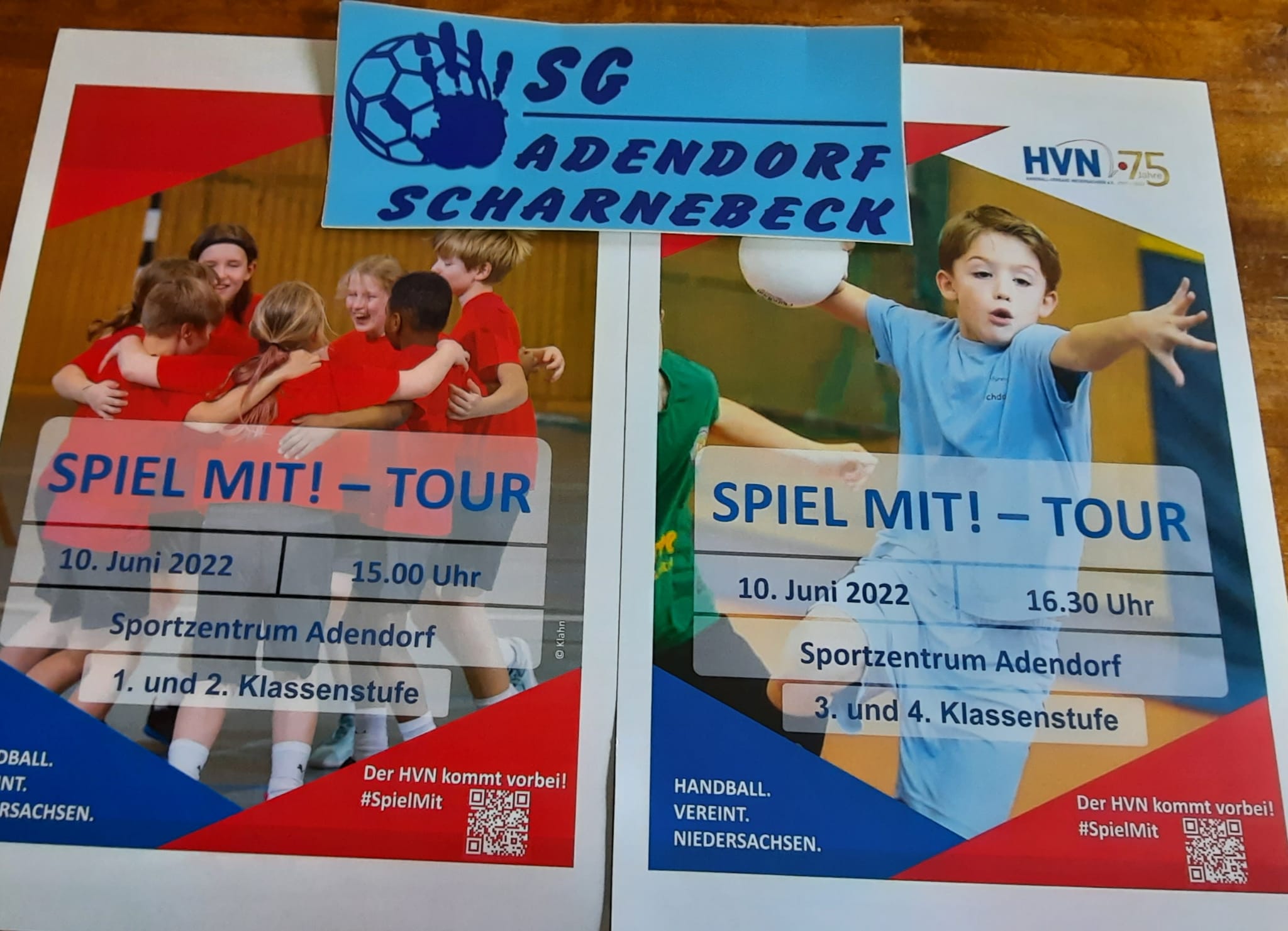 Am Freitag, 10. Juni, können alle 6 – 10Jährigen sich bei der SPIEL MIT-TOUR des HVN in der Sporthalle Adendorf, Scharnebecker Weg, im Handballspielen ausprobieren. Einfach mal testen – kommt vorbei!